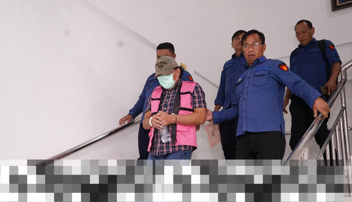 Tersangka Baru Kasus PNBP Pelabuhan Belawan Menutupi Wajah dengan Topi dan Masker
